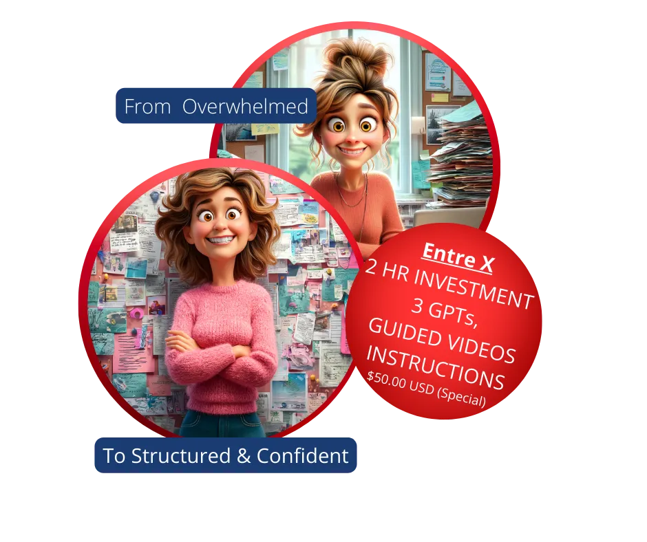 With Entre X (which has been written by Changing Courses 11) you’ll discover how to move from overwhelm and confusion of your current business, you will then work in silence, making your way through the questionaire and the GPTs that build upon each outcome from the previous GPT. It is personalized guidance based on your input, and easy-to-follow 3 step process provided to you in a Notion Document. You’ll walk away feeling more aligned, more confident, and more in control of your future. ( You do NOT need Notion to access the document)